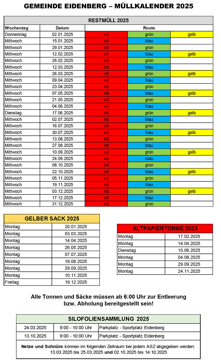 Gemeinde Eidenberg: Abfuhrplan - 2025