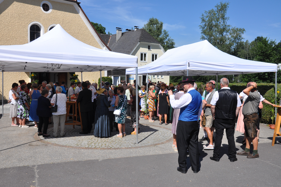 Auf Einladung des Kirchenbauvereines wurden die Kirchenbesucher:innen mit köstlichen Mehlspeisen und Getränken sowie selbstgebackenem Gebäck von den Ortsbäuerinnen bewirtet. Bürgermeister Adi Hinterhölzl spendierte einen Teil der Getränke. Danke.