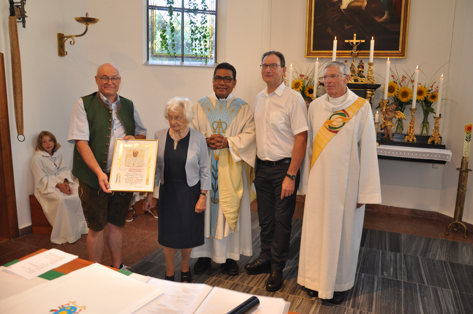 Eine besondere wertschätzende Ehrung erhielt die gesamte Genger Kirchengemeinde. Sie wurde stellvertretend an eine Abordnung verschiedener Generationen überreicht. Dabei hob Pater Markus auch die Bedeutung der künftigen Generationen hervor – ein Appell an die Jugend, diese Kirche weiterhin mit Leben zu füllen. Die Genger Kirche soll immer bestehen bleiben.