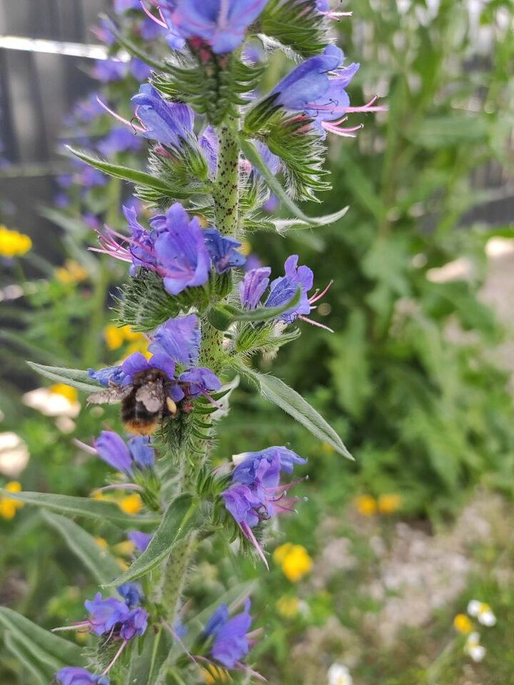 Besonders hervorzuheben ist in diesem Zusammenhang der einjährige Borretsch (Borago officinalis) auch Gurkenkraut genannt. Borretsch blüht von Juni bis zum ersten Frost und kann sich ebenfalls durch Selbstaussaat an passenden Standorten vermehren.