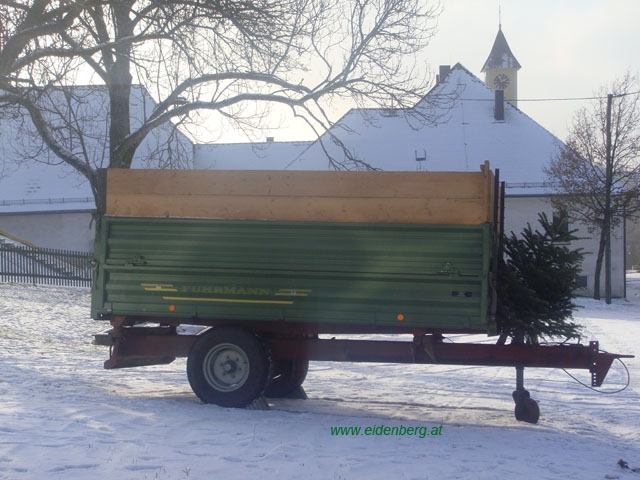 Bitte Christbäume restlos abräumen und in den bereitgestellten Traktoranhänger werfen.