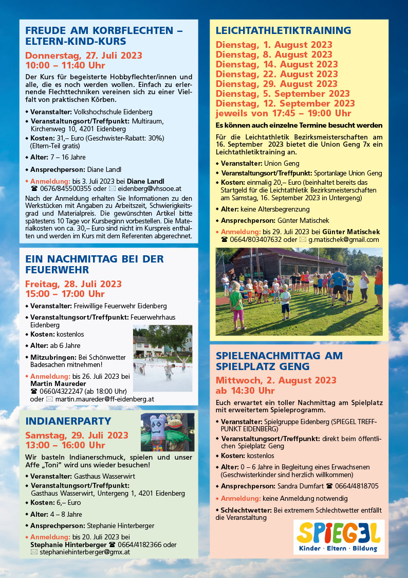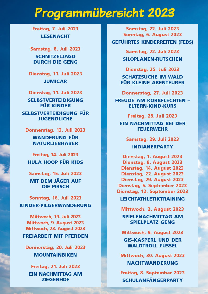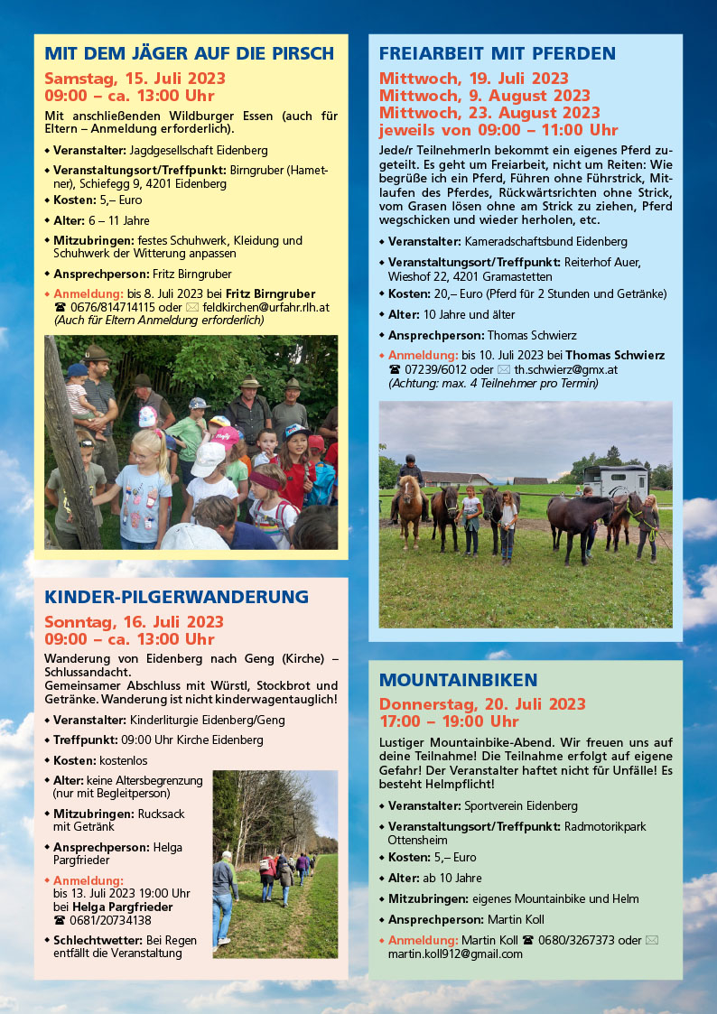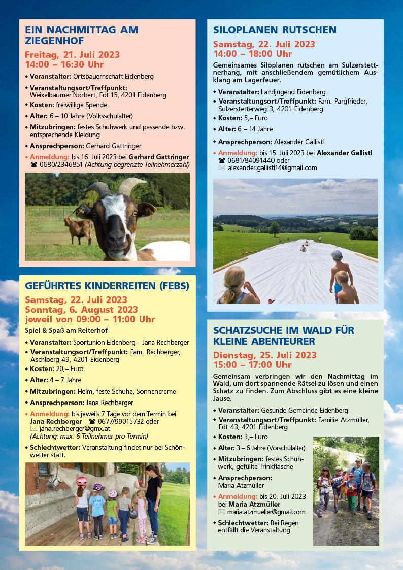Auch heuer steht auf unserer Homepage wieder das Eidenberger Ferienprogramm "Kindersommer 2023" für Kinder zum Nachlesen bereit!
