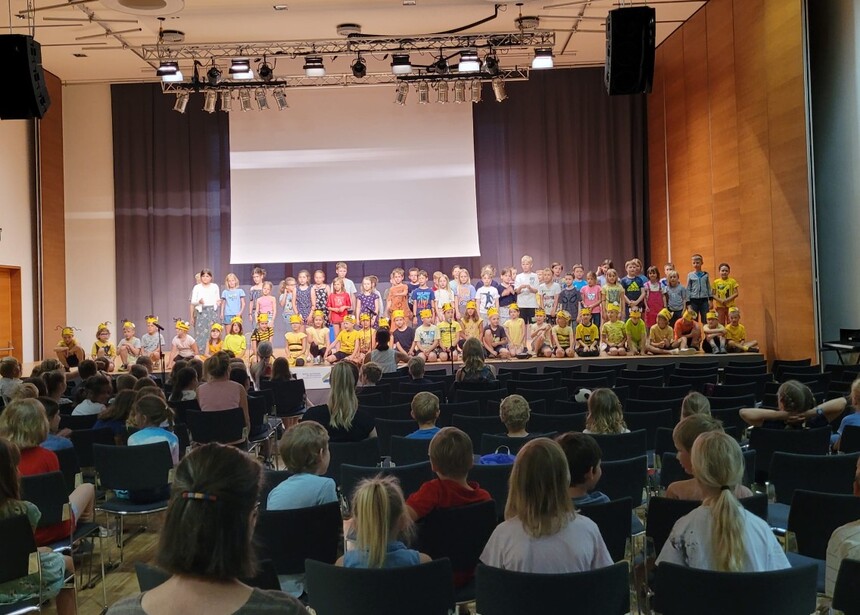 Die Abschlussveranstaltung im Gramastettner Gramaphon wurde von den Kindern, Schulleiterinnen, Lehrerinnen und Lehrern mit viel Engagement vorbereitet und gab einen kreativ gestalteten Überblick über das Erlernte. Nach einem Bienentanz der Jüngeren gab es selbst geschriebene Lieder, ein selbst kreiertes Theaterstück, eine dramatisch inszenierte, kritische Gegenüberstellung von Klimaschutzbefürworter:innen und jenen, die ihr klimaschändliches Verhalten nicht ändern wollen, eine Präsentation über 32 bedrohte Tierarten, einen Sketch über die generationenspezifischen Ansichten im Umgang mit Lebensmitteln und vieles mehr.