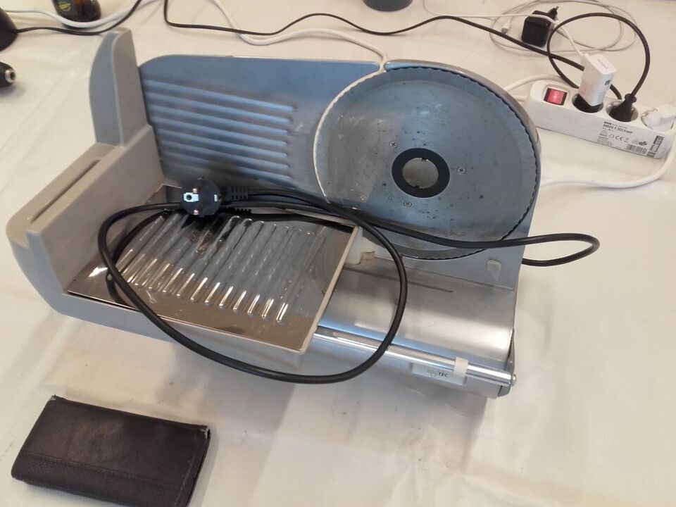 - und bei einer brotschneidemaschine wurde das kabel neu angeschlossen