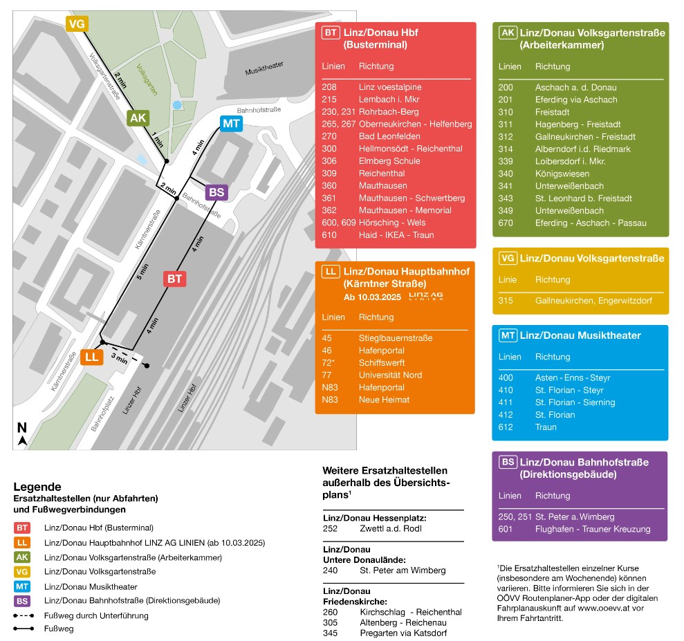 Alle Details zu den Ersatzhaltestellen und den betroffenen Linien finden Sie auf ooevv.at/busterminal.ooevv.at/busterminal.