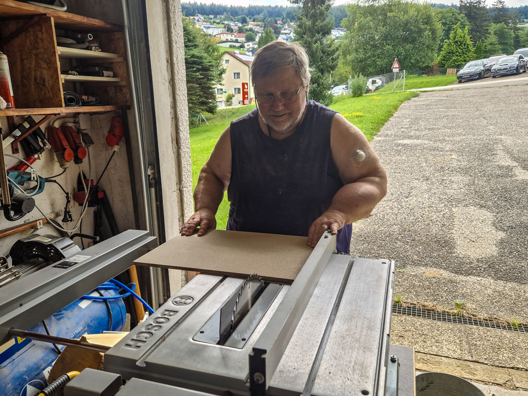 Als erste Schritte werden nun die Grundplatten und Sockelleisten für den Krippenbau zugeschnitten.