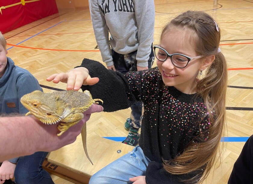 Die Kinder durften Schlangen, Spinnen, Agame und weitere Reptilien hautnah erleben und sogar anfassen. Alle waren fasziniert von den exotischen Lebewesen, die man nicht täglich zu Gesicht bekommt. Sehr interessant waren auch die vielen Informationen rund um diese spannenden Tiere.