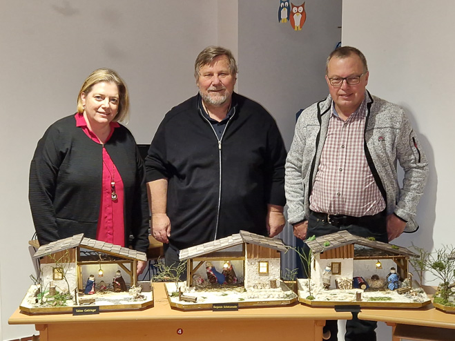 Die Weihnachtskrippen-Ausstellung der „d’Mühlviertler Krippler“ – Ortsgruppe Eidenberg im Kulturstadl fand auch in diesem Jahr wieder großen Zuspruch! Die beeindruckende Auswahl an Krippen, die in der kleinen Vereinswerkstätte von Kursteilnehmern unter Anleitung der beiden Krippenbaumeistern Lydia und Michael gebaut wurden, begeisterte die Besucher ob der hohen Qualität der Werke.