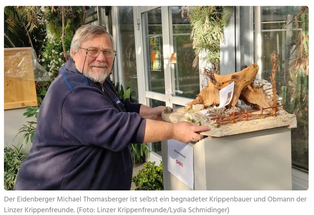 Es „weihnachtet“ auch im Botanischen Garten in Linz. Denn da stellen die Linzer Krippenfreunde bis 2. Februar ihre Werke zur Schau. Der aus Eidenberg stammende Krippenfreunde-Obmann Michael Thomasberger selbst ist von den tollen Krippen begeistert.