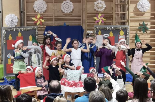 | Adventfeier in der VS Eidenberg | Christkind in der Schuhschachtl |