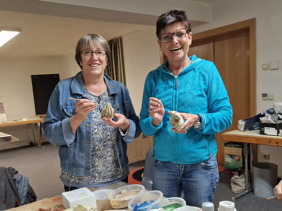 d`Mühlviertler Krippler - Mit viel Energie und Kreativität nahmen sechs Krippenfreunde, darunter auch unsere Krippenbauerin Lydia Schmidinger, an einem 3-tägigen Kurs teil. Der Kurs wurde von Elisabeth Schupfer abgehalten, die professionell die Kunst des Bekleidens von Heide-Krippenfiguren den Teilnemhern näherbrachte. Mehr darüber