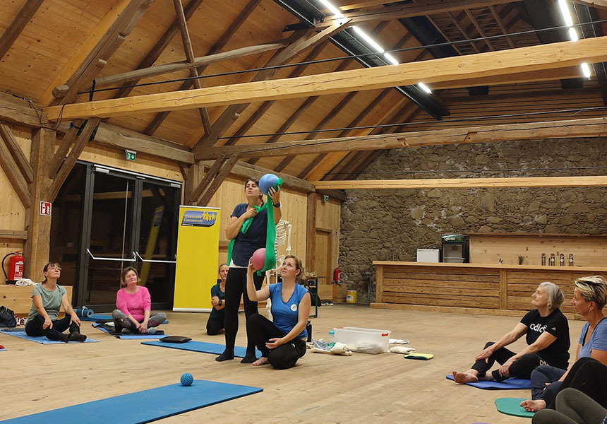 Das Trio um Sabine Obermaier (BSc., Ergotherapeutin), Edith Grünbacher (BSc. Physiotherapeutin) und Silvia Moser (Masseurin und Physiopädagogin nach Spiraldynamik ®) leiteten mit Übungen zum selber ausprobieren ...