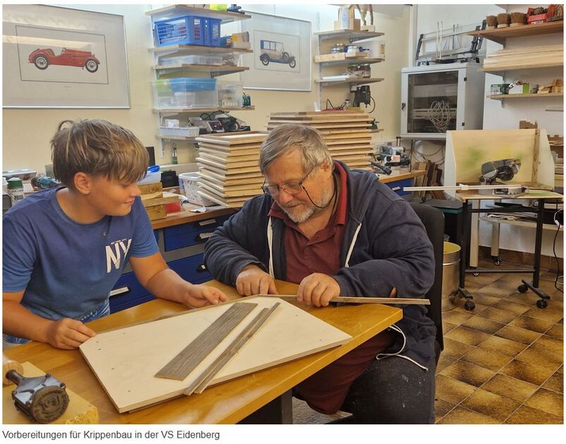 Die Vorbereitungen für den Krippenbau, der ab Herbst in der Volksschule Eidenberg stattfindet, sind voll angelaufen.