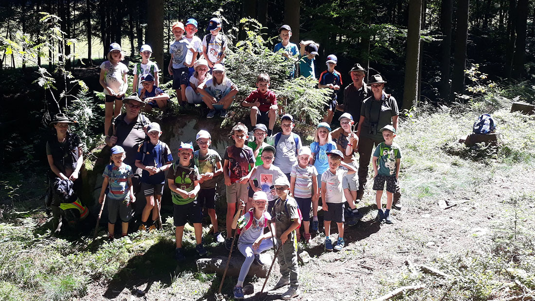 Über 30 Kinder durften mit den Jägerinnen und Jägern auf die Pirsch gehen. Beim gemeinsamen aufmerksamen Durchstreifen von Wiesen und Wald konnten die Kinder allerhand über unsere Natur und die Wildtiere lernen und bestaunen.