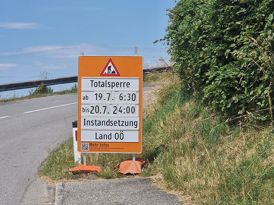 Totalsperre der L1505 Eidenberger Straße Bereich Köppelmayr von Mittwoch, 19.07.2023 ab 06:30 Uhr bis Donnerstag, 20.07.2023, 24:00 Uhr wegen Straßenbauarbeiten