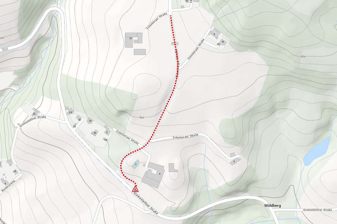 Die L1505,L581, Eidenberger Straße, Hansbergstraße (Neulichtenberg – Eidenberg) ist von Mittwoch, 19. Juli 2023 06:30 Uhr bis Donnerstag, 20. Juli 2023 23:55 Uhr gesperrt.