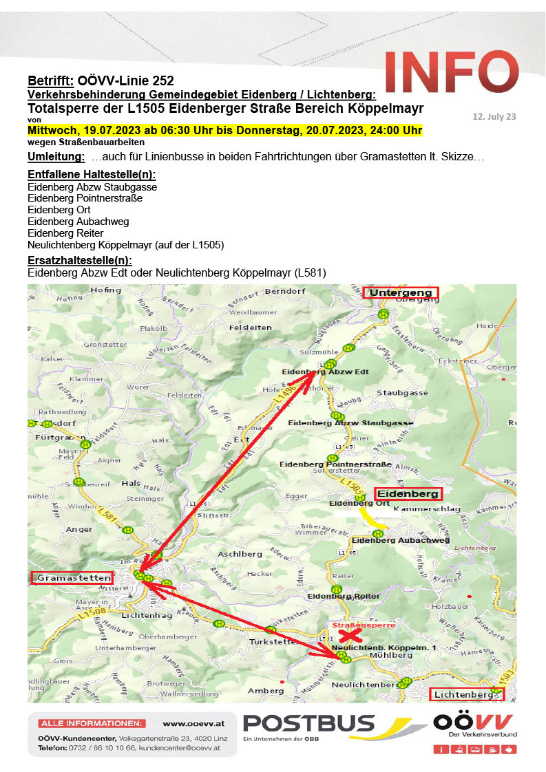 OÖVV-Linie 252 Verkehrsbehinderung Gemeindegebiet Eidenberg / Lichtenberg