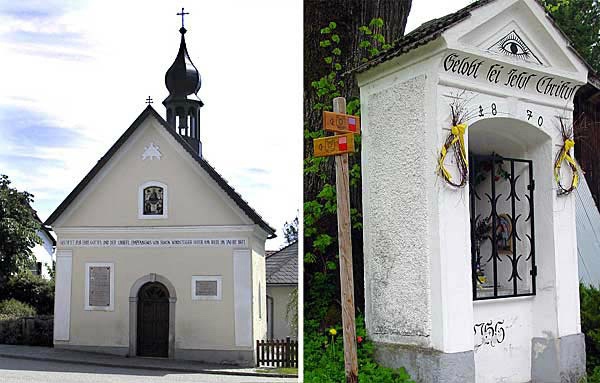 Route: Ortsplatz Untergeng - Ansager - Wiesmahdhäusl - Wolfgangkapelle und Kopfwehstein - Groß Gröblinger - Kuhhalthäusl - Ortnerhäusl - Ortsplatz Untergeng |